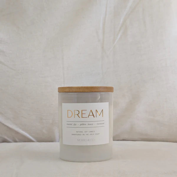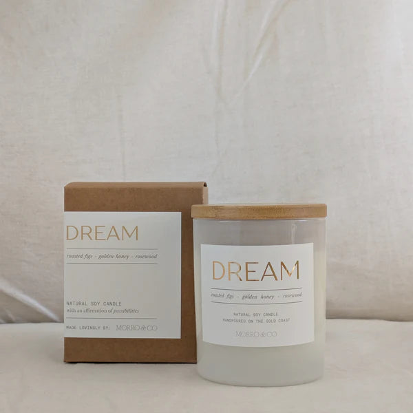 DREAM is an inspiring candle that marries roasted figs, warm honey, and rich rosewood to awaken creativity and possibility. With a generous 45-hour burn time, this sophisticated fragrance transforms any space into a sanctuary for imagination, reflection, and intention-setting. Perfect for creative minds seeking clarity or anyone yearning to reconnect with their aspirations, DREAM encourages fresh perspectives and hopeful thinking. Each candle arrives with a handwritten affirmation, serving as a daily reminder that dreams are the foundation of transformation. Ideal for your creative workspace, meditation practice, or as a meaningful gift for visionaries and dreamers.