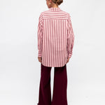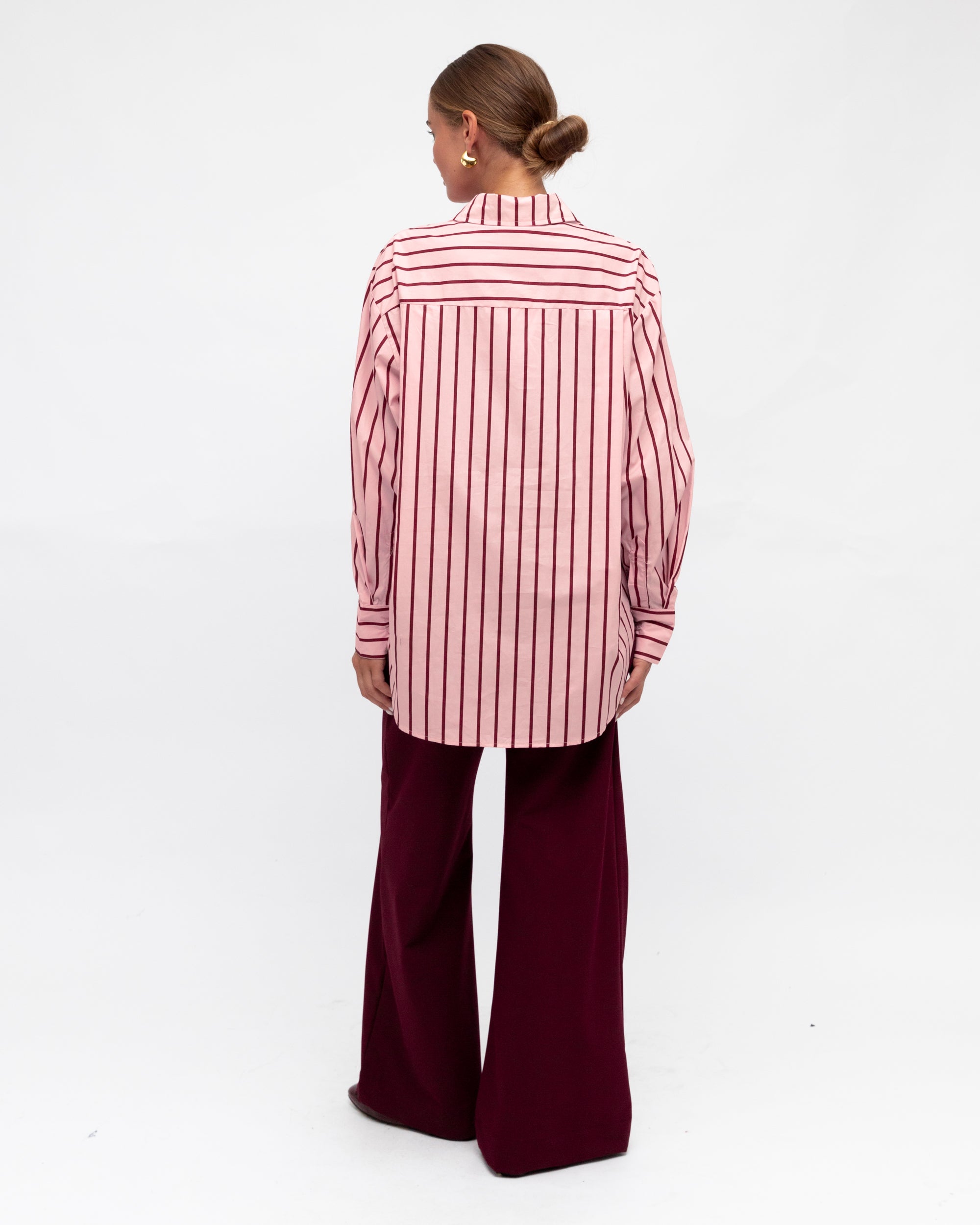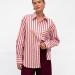 Elevate your casual wardrobe with this sophisticated button-front shirt, featuring a refined pink and burgundy stripe pattern. Crafted from 100% cotton, it offers breathable comfort and a smooth touch, perfect for effortless style throughout the day. The classic collar and tailored fit combine timeless appeal with modern versatility, making it an essential piece for polished, everyday elegance.