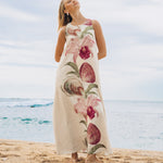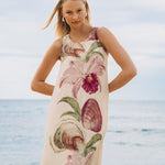 The Sea Siren Maxi Dress combines elegance with comfort in a luxurious rayon-linen blend. This sophisticated piece features a stunning silhouette with gorgeous soft-toned large-scale prints adorning both the front and back, creating an effortlessly refined look. The flowing maxi length and breathable fabric make it an ideal choice for the season ahead, whether you're dressing for a special occasion or elevated everyday wear.
