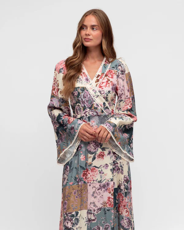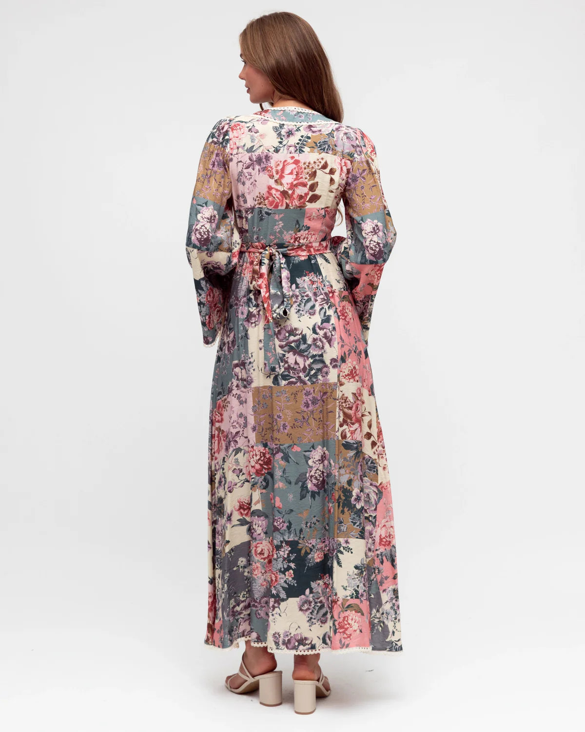 Elevate your wardrobe with the Vintage Dream Maxi, featuring an exclusive print and a flattering V-neckline. The wrap-style design and balloon long sleeves add a touch of elegance, while the maxi length offers graceful movement. Crafted from polyester with a regular fit, this dress combines comfort and sophistication effortlessly. Perfect for refined occasions, it embodies timeless style with modern details.